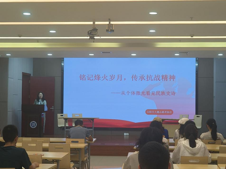 9月12日,湖南理工学院图书馆一楼多功能厅内,一场以“铭记烽火岁月,传承抗战精神——从个体微光看见民族史诗”为主题的抗战老兵故事分享会在此举行。本次活动由图书馆晚八点书友会、明德国学学生团队,岳阳市大德志愿者协会联合主办,邀请黄威、玲珑、周亚军、采离等嘉宾,带领师生走进老兵的烽火人生,在秋意中开启一场与历史的深度对话。