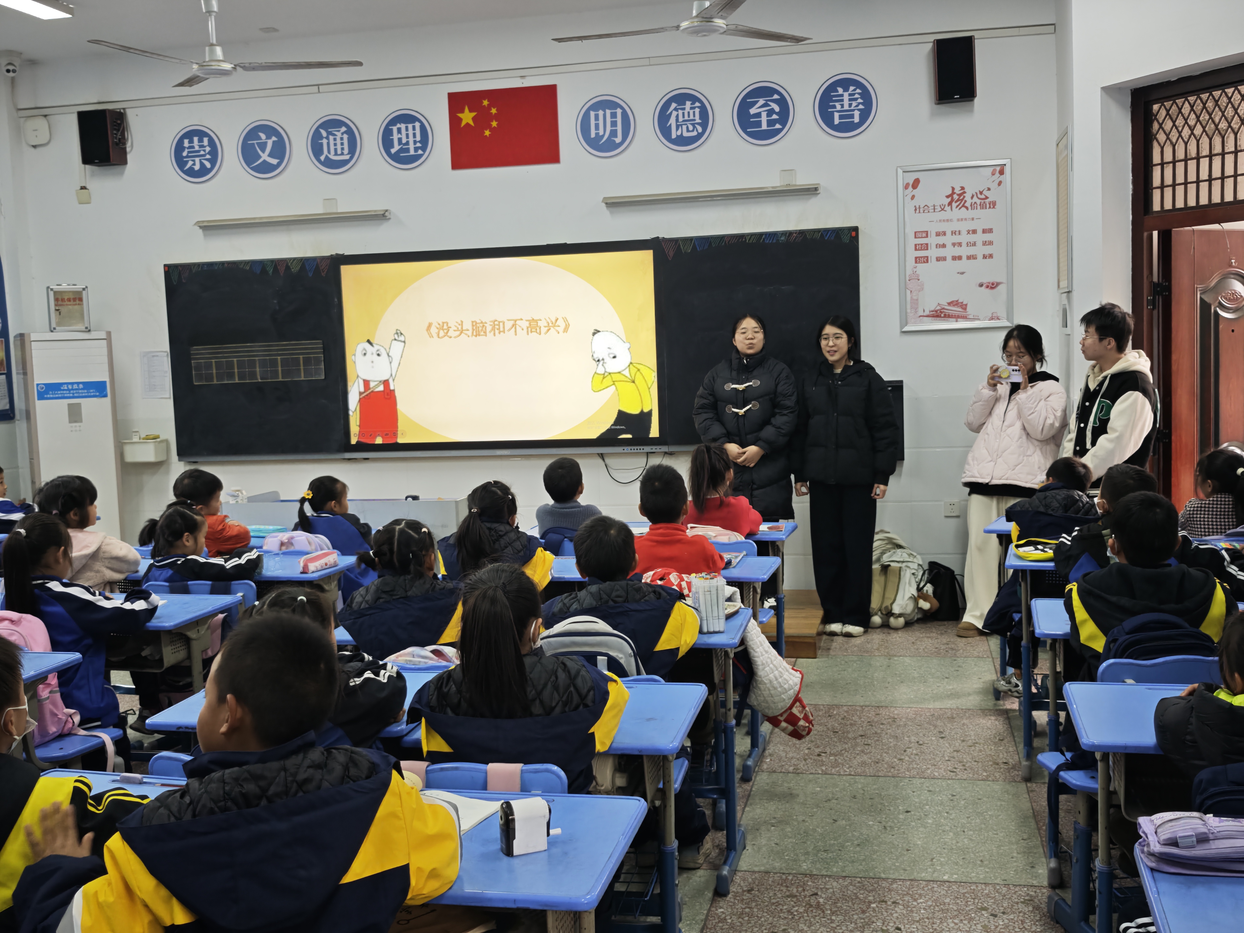 “书香沁童年 阅读照未来”。12月2日下午,湖南理工学院图书馆的20多名大学生志愿者们来到了岳阳市南湖新区畔湖湾小学,给孩子们上了一堂别开生面、精彩纷呈的公益阅读课,分别为不同年级的四个班级带来了阅读分享,通过趣味讲解与互动游戏,让小朋友们在欢乐氛围中感受阅读的魅力。