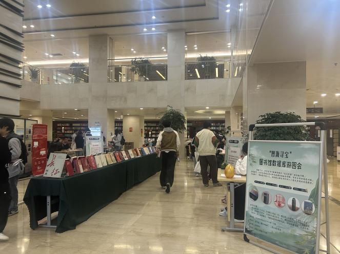 2026年4月21日下午,图书馆信息教育与服务部精心策划的“智海寻宝”——数据库游园会火热开展,活动改变传统培训“沉闷讲座”的刻板模式,以闯关集章的形式,将知网、超星、万方、IEEE等学术数据库的检索技巧与特色功能融入趣味游戏,吸引了大批读者踊跃参与,现场气氛热烈。